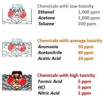 Start with thoroughly familiar with the PEL-TWA (Permissible Exposure Limit-Time Weighted Average) of the chemicals you handle! It tells us how much vapour a worker can breathe 8 h d⁻¹, 40 h wk⁻¹, for a 40-year career without expected adverse effect…