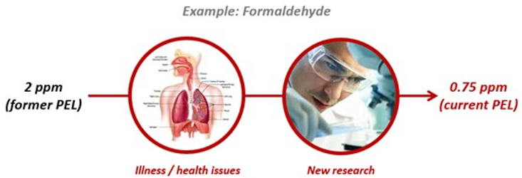 Moreover, your chemistry laboratory is not an ordinary workplace: hundreds of chemicals may be used within a very limited space. PEL-TWA values are established for individual chemicals and apply to single-substance inhalation, not accounting for cumulative exposure—which is common in laboratories. For mixtures of chemicals, PEL-TWA limits cannot be precisely determined. Additionally, if safety authorities find that certain chemicals are more hazardous than previously thought, the PEL-TWA values will be revised downward accordingly.