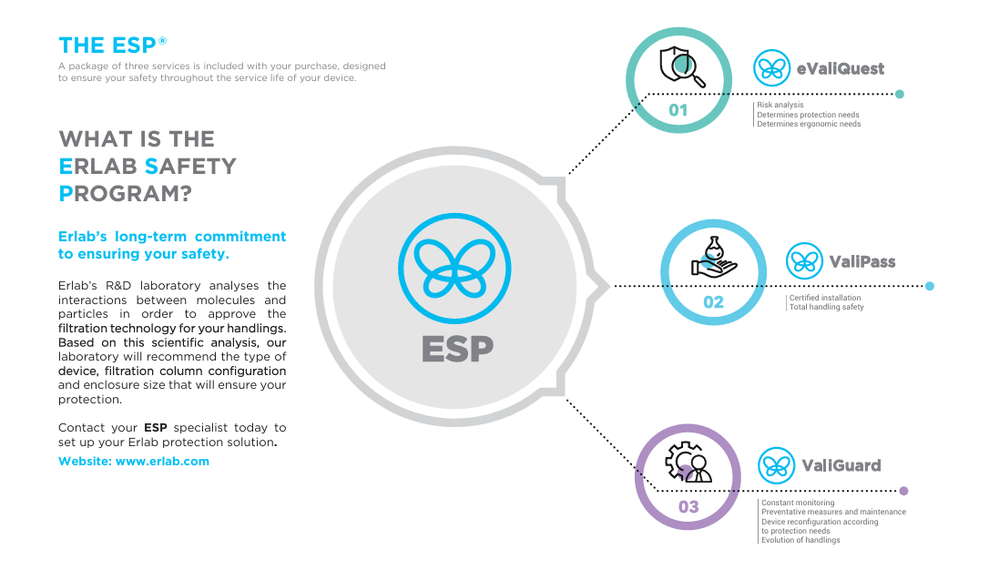 To ensure reliable protection, Erlab created the Erlab Safety Program (ESP)—a comprehensive safety framework that guides laboratories through risk assessment, validation, and ongoing monitoring.