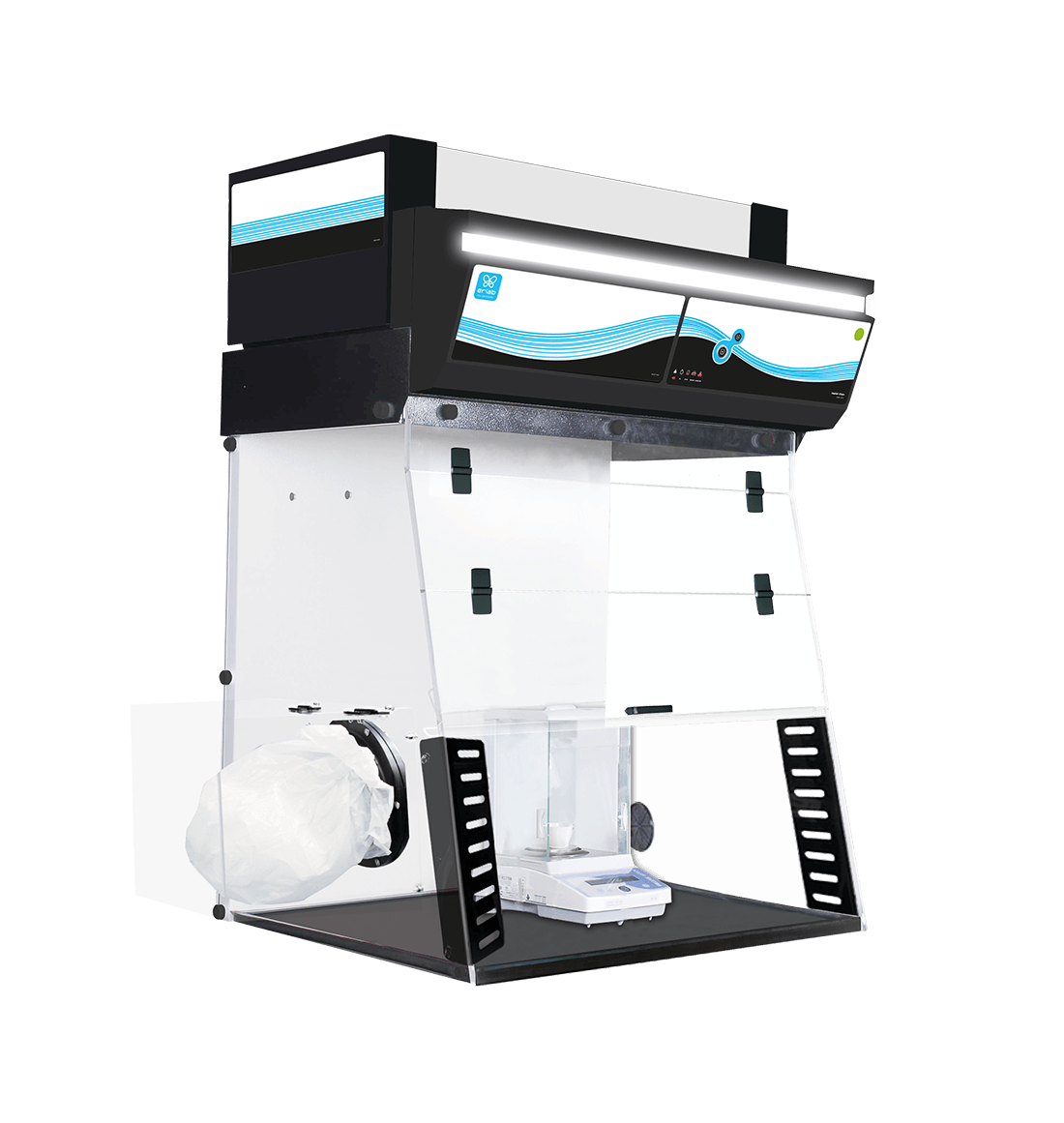 On the other hand, it allows you to carry out all your weighing tasks while trapping molecules and/or particles at source, with no risk of contaminants escaping into the environment. Now available with the new, high-retention-capacity BE+ polyvalent filter and the HEPA H14 filter (EN 1822-1, 99.995% efficacy on the MPPS test.)